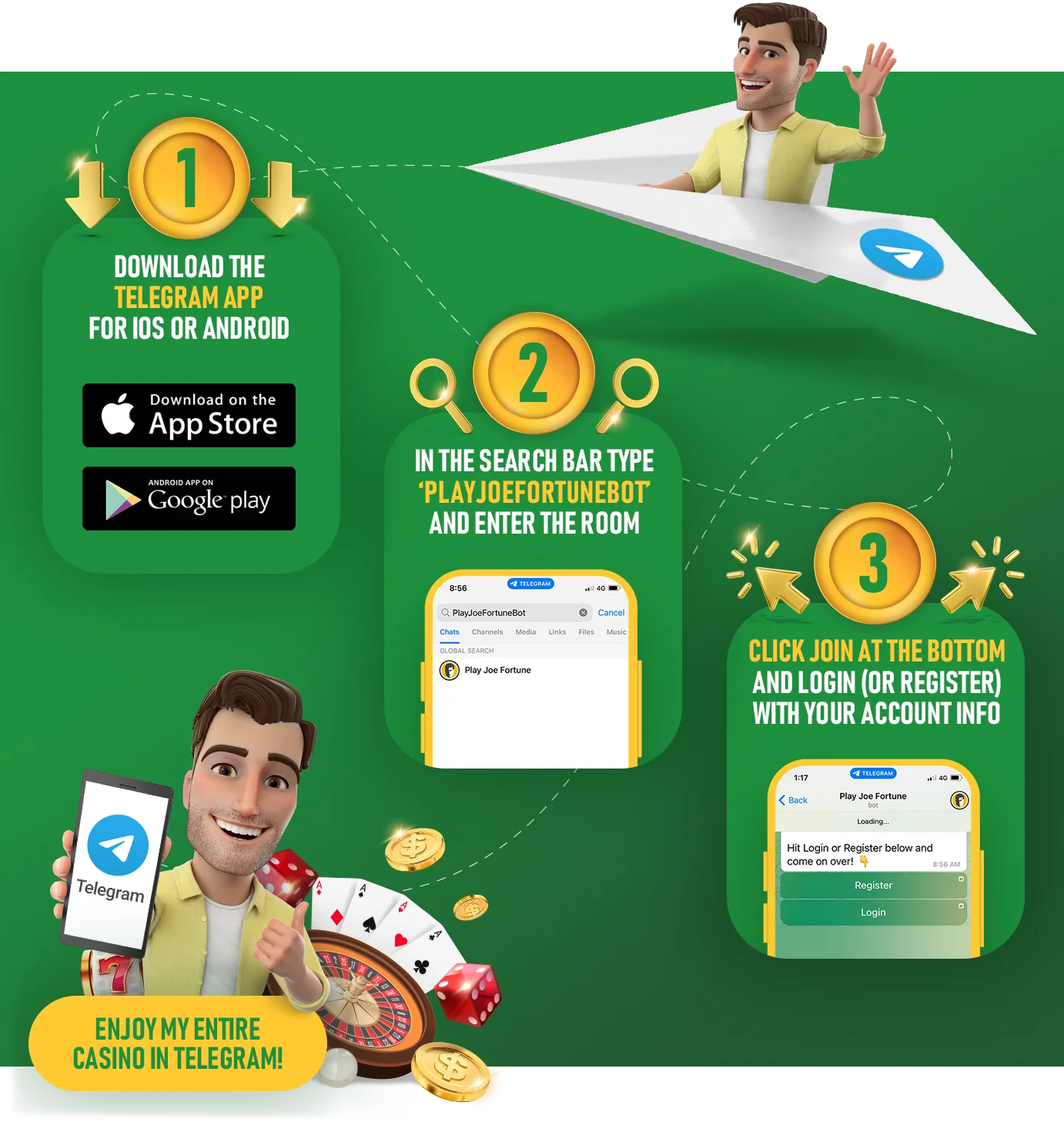 Exciting times and great news to share with you all! Joe Fortune Casino is now available on the world's fastest growing community and instant messaging app, Telegram!